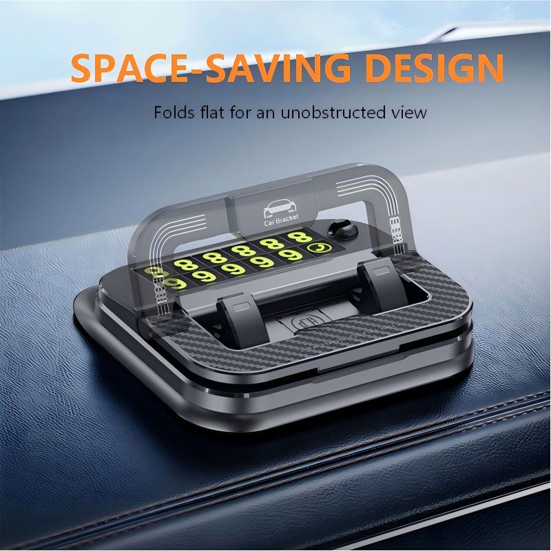 ZUSAMMENKLAPPBAR & FREIE SICHT: Bei Nichtgebrauch lässt sich die Halterung flach an das Armaturenbrett klappen. Dieses clevere Design sorgt für uneingeschränkte Sicht, ein aufgeräumtes Interieur und weniger Ablenkungen während der Fahrt.
