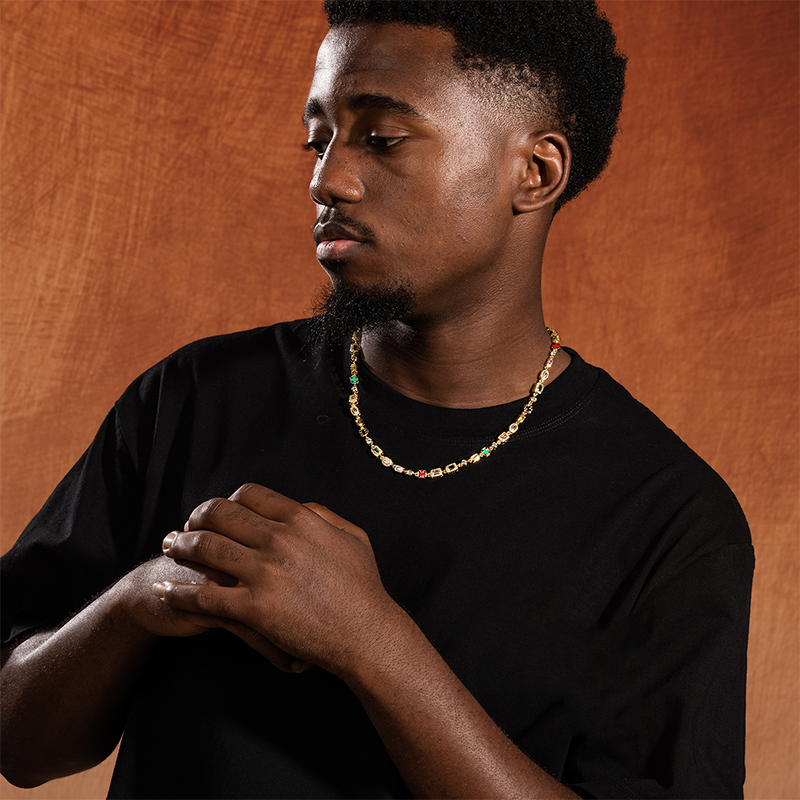 INTRICATE ICED-OUT DETAILING - Each link is meticulously encrusted with sparkling stones, delivering a high-end, luxurious shine that captures attention and elevates your look with a touch of urban brilliance.