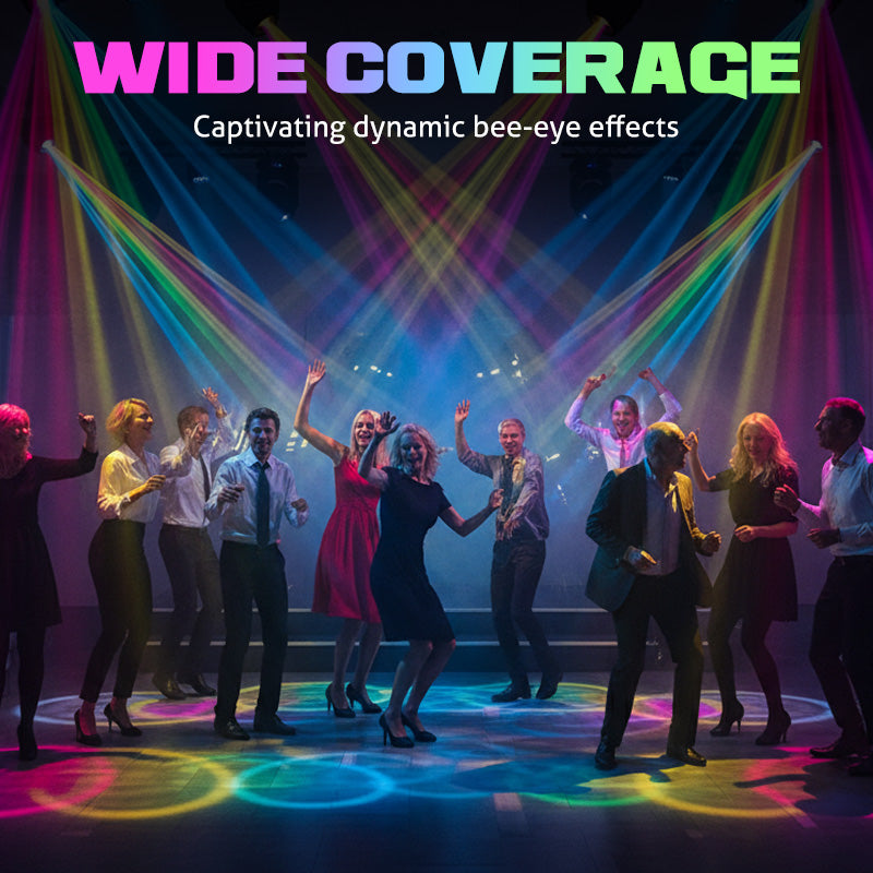 INTEGRIERTE BEE-EYE-LINSE – Die zentrale Bee-Eye-Linse erzeugt einen faszinierenden Wash-Effekt mit mehreren scharfen Strahlen. Sie verleiht Ihrer Beleuchtungsanlage Tiefe und Komplexität und sorgt für professionelle Visuals für Bühnen, Clubs und Partys.