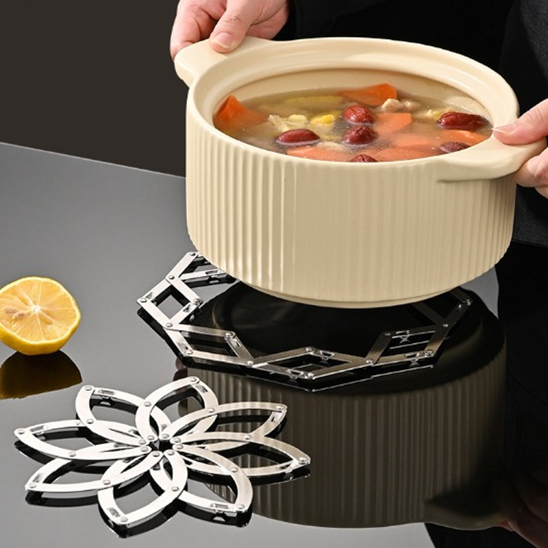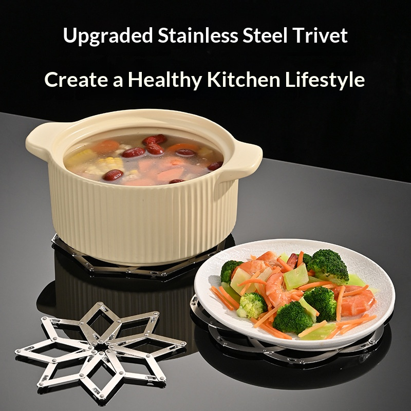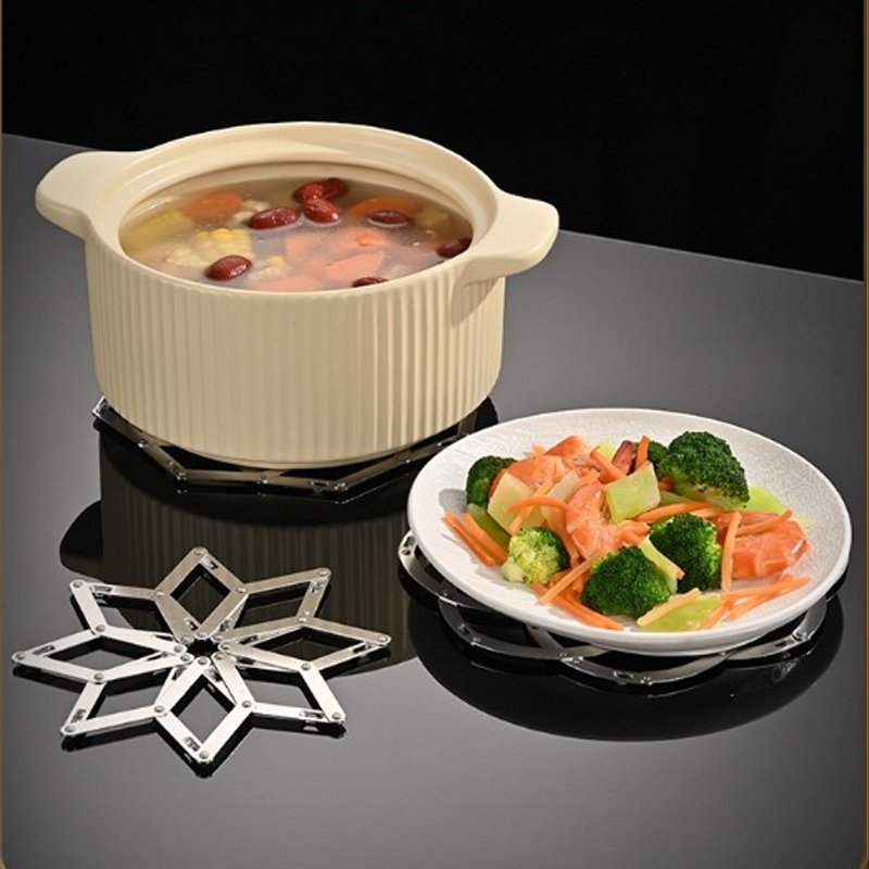 OUTIL POLYVALENT : cet outil unique remplit plusieurs fonctions dans votre cuisine. Utilisez-le comme dessous-de-plat élégant pour les casseroles chaudes, comme support pratique pour les assiettes ou même comme support de cuisson à la vapeur pratique à l'intérieur d'une casserole plus grande.