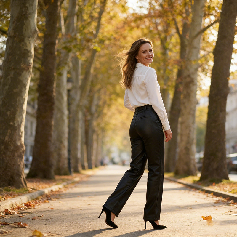 Versatile High-Waist Faux Leather Pants